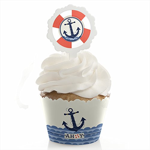 Ahoy Nautical – Cupcake Wrapper & Pick Party Kit - Set of 24