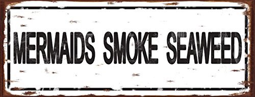 Mermaids Smoke Seaweed Metal Sign, Contemporary Beach Sign, Pool Décor