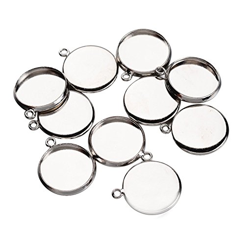 Pandahall 10pcs Platinum Brass Blank Pendant Cabochon Settings, Setting for Cabochon, Lead Free and Cadmium Free (Platinum)