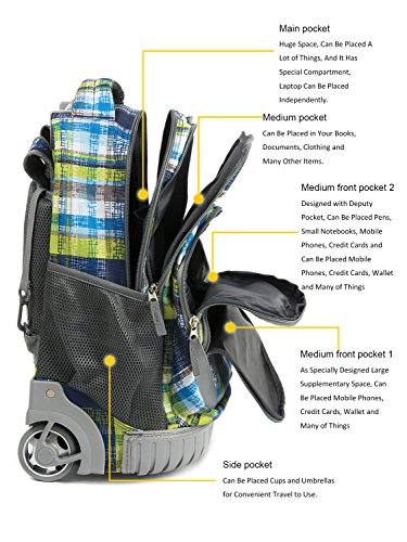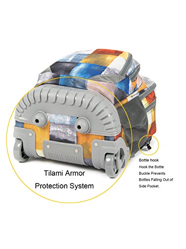 Tilami is used by diameter of 7cm noiseless high-density wheel, make wheel it easily and naturally. The fixed wheel adopted triangular protective wheel bracket of TPE material, it perfectly protected the wheel and improves the lifetime greatly. And it is used by high-strength aluminum alloy rod, it can bearing 30lb at least. The bottom adopted Tilami armor protection system, it made up of two large load-bearding foot brace, a high strength protective plate and heavy plastic edge armour is constituted perfect protection structure. Also the zipper adopts double sliders design, the lifetime is five times more than ordinary zipper. When you want to carry it on back, it used ergonomic design the anti-skid system in the back of product, it greatly improve the comfort. And not only design reflective straps, but straps adopted double-stitching design in case that straps slide out of the buckles. Details: Brand:Tilami Color:Multicolor Fabric:Polyester Product Weight:4.85lb Shipping Weight:6.17lb Dimensions(Due to personal measurement technique is different, there may be 1"-2" error of the physical):19.45"*9.45"*13.39"(Package); 18.92"*8.27"*12.87"(Product normal); 26.26"(Second stage height); 37.28"(Third stage height); 10.43"*9.25"(Medium front pocket 1); 11.73"*10.71"(Medium front pocket 2); 16.73"*11.53"(Medium pocket); 17.64"*13.31"(Main pocket); 9.49"*10.94"(Main pocket compartment); 6.61"*6.41"(Side pocket); Application:Study, Travel, Outdoor, Recreation, Work Recommend load-bearing:33lb Aviation size limits:Size Allows Exclusive Technics:Wheel Cover Design, Noiseless Wheels Design, Tilami Armor Protection System, Back Cushion Storage Design 0 |