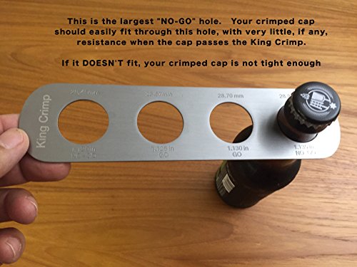 ✔ EASY TO USE GO/NO-GO GAUGE - The two center holes (marked"GO") represent the lower and higher allowable tolerance for a properly crimped 26mm cap. The two outer holes (marked "NO-GO") represent crimped crowns either too small, or too big for the 26mm bottle cap.