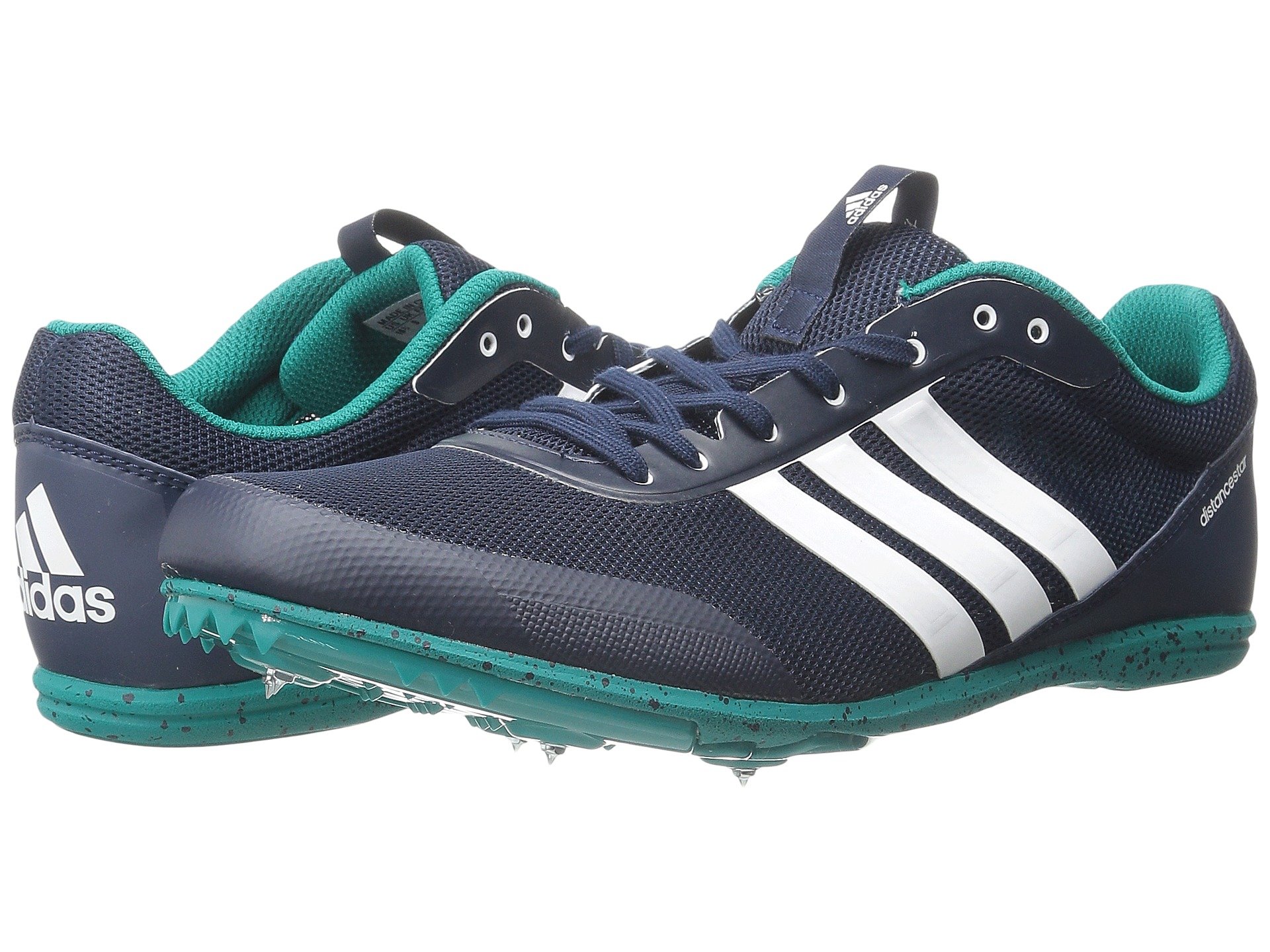 | Product Information SKU: #8640537Give an all star performance on the track in the adidas? Distancestar W spikes.Track and field shoe.Air mesh upper enhances breathability, keeping feet cool and dry during intense races.Seamless toe cap.Traditional lace-up closure.Textile lining and lightly cushioned footbed.EVA midsole.Textured ADIWEAR™ rubber outsole provides long-lasting durability and traction. Lightweight TPU plate outsole.Molded five-spike synthetic outsole.Imported.Product measurements were taken using size 8, width B - Medium. Please note that measurements may vary by size.Weight of footwear is based on a single item, not a pair.Measurements: Heel Height: 1?2 in Weight: 14 oz |