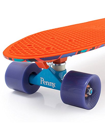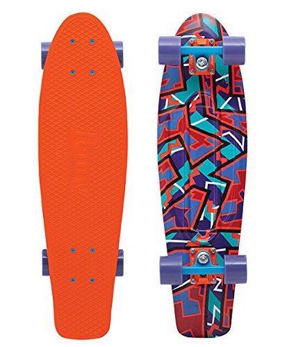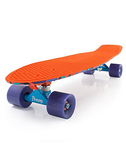 -. Brand : Penny -. Color : Orange -. EAN : 0780742790178 -. Feature : Brand: Penny - Size: 7.5x27in / With a graffiti-inspired geometric print and an orange burst of colour that brings instant fun, the Spike 27in is a great skateboard for any Penny fan. In a nod to the Ô90s goodness thatÕs re-invigorating our current style, this board will give you instant street cred. / Wheels and Bearings: Purple 59mm 83A wheels complement the great geometric design that Spike features. Made from Penny's high quality, chip-resistant formula, these wheels give you a smooth ride and last for ages. Complete with Abec 7 bearings you'll have the best board around. / Trucks: Blue powder coated trucks draws out the blue in the boardÕs bright pattern. The high-quality aluminium construction of Penny trucks keeps your ride light, strong, and ready to carve. / No assembly required. Ready to ride right out of the box! -. Label : Penny -. Manufacturer : Penny -. Model : DECK -. MPN : P27SO-C -. PackageQuantity : 1 -. PartNumber : P27SO-C -. ProductGroup : Sports -. ProductTypeName : OUTDOOR_RECREATION_PRODUCT -. Publisher : Penny -. Size : 7.5 -. Studio : Penny -. Title : Penny Spike 27' Skateboard Nickel Board Complete - Orange -. UPC : 780742790178