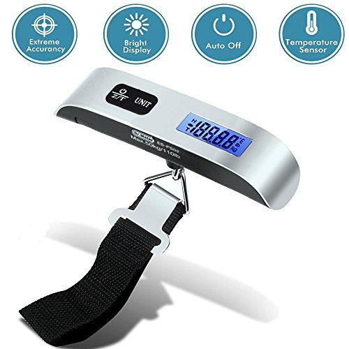 [Backlight LCD Display Luggage Scale]Dr.meter 110lb/50kg Electronic Balance Digital Postal Luggage Hanging Scale with Rubber Paint Handle,Temperature Sensor, Silver/Black