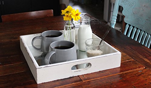 White Wood Galvanized Tray, Set of Three Square Trays (White Painted, Distressed, Decorative or Serving) | by Urban Legacy