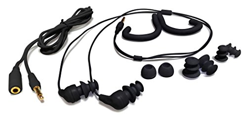 -. Feature : 100% Waterproof with gold plated stereo jack to prevent corrosion. / Flanged ear buds create a tight seal and are designed to stay in during flip-turns / No more stuffing long headphone cords under your swimcap or goggle strap! / Waterproof audio extension cord included for when you need a longer fit / Find your best fit: 4 earbud tip options included