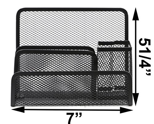 - Superior Quantity: High quality Metal Steel material with more than 10 years of experience in designing and manufacturing office mesh desk organizer products. Practicability Design: 4 compartment (2 desk accessories holders, 1 pencil holders, 1 document slot) desk organizer for desk accessories and home, school or office supplies. Help to save space on your desktop, to create a orderly unique space.