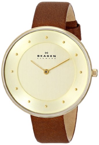 Great for going out or just hanging out, this Gitte watch by Skagen is the perfect complement to your wardrobe. The gold dial really pops and is shelled by a strong mineral crystal and sturdy 38MM stainless steel case. The brown leather band will stay fastened without irritating your wrist, making this watch perfect for everyday wear.Feature