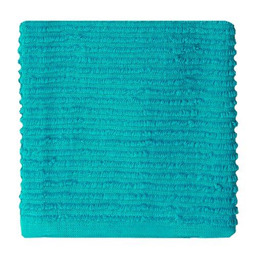 MUkitchen 100% Cotton Ridged Dishcloth, Aquamarine - 12 x 12 inches