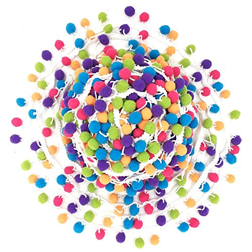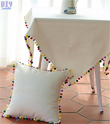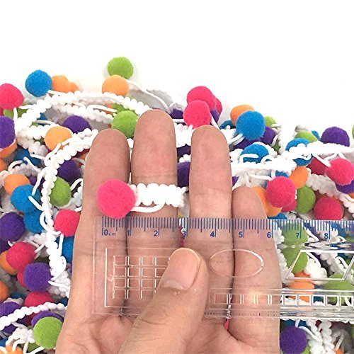 Jimess 1/2 inch Rainbow Pom Pom Balls Fringe Pompom Lace Tassel Pompom Trim Ribbon Apparel Fabric Cord DIY Craft Sewing Supplies (5Yards, Wthie)