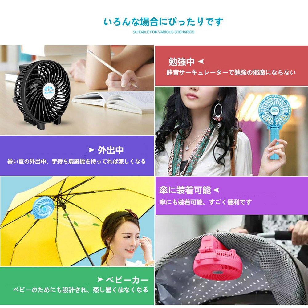 Air flow volume 3 step adjustment 6 sheets Feather angle adjustment and wearable in an umbrella Strong wind pretty mini fan