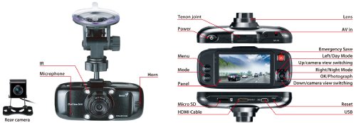 Genius has launched a wide range of DVR devices for use as a extra eye on the road for emergency situations. These DVR units provide car safety and record evidence in case there are any accidents and looks to reduce any possible disagreements. The latest release is the DVR-HD500D, which is the first dual vehicle recorder that lets you view from the front and back simultaneously as the rear camera is connected with a seven meter cable. The front lens is a HD lens recorder/30 fps H.264 compression 130 degree wide angle with an IR LED to use when driving at night. The rear camera has a VGA lens to record what is going on behind you on the road. The wide 130 angle lens lets you view video without distortion. The built-in three axis G-sensor can sense any crash events and protect the recorded files as evidence for any necessary insurance claims.Feature
