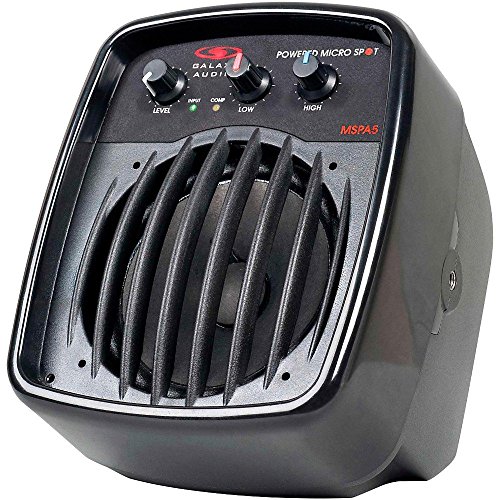 Studio : Galaxy Audio Publisher : Galaxy Audio Product Description The Powered Micro Spot model MSPA5, incorporates design features found in both its big little brother, the Powered Hot Spot Powered Nano Spot, maintaining a similar compact design. The Micro Spot Series is designed to be used in a wide array of applications: churches, schools, courtrooms, fixed installations, or on stage. The MSPA5 is powered by an internal 100 watt amplifier, delivering quality sound through the specially designed 5" full range speaker. This provides superior vocal clarity. The Powered Micro Spot will accept mic or line level with its XLR ( 48V phantom power), 1/4", or 1/8" input.Volume and EQ controls are conveniently located on the front of the Powered Micro Spot. Additionally, there is an indicator for the built-in compressor/limiter, which helps prevent overdriving of the speaker and distortion. The Powered Micro Spot can be mounted to a mic stand or be wall/ceiling mounted with the included hardware. 0