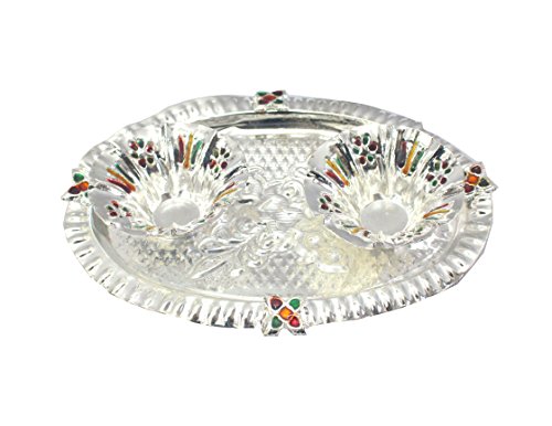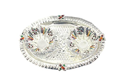 The beauty of this set lies in the immaculate finishing present on the plate, as well as, as the two tiny containers that are essential for carrying out various traditional rituals.
