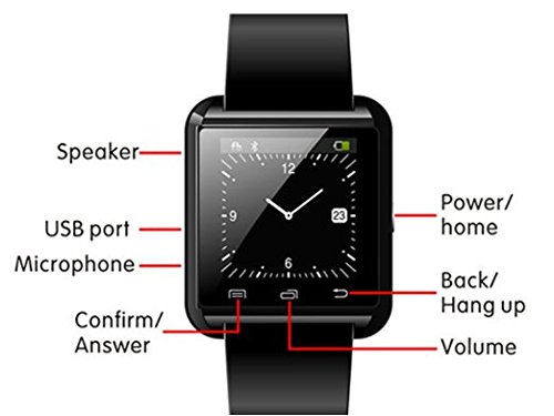 Handsfree Speaker Phone.Answer or Dial calls from your wrist.Ringing reminder when you receive a call.Display the number or name of incoming call. Time / Date / Week / Battery state display