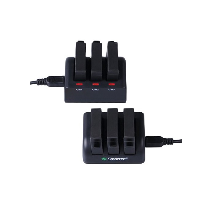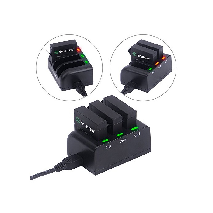 급속한 3채널의 충전기는 시간 절약을 위해서 일시에 GoPro Hero4용의 3매의 전지를 충전할 수 있습니다