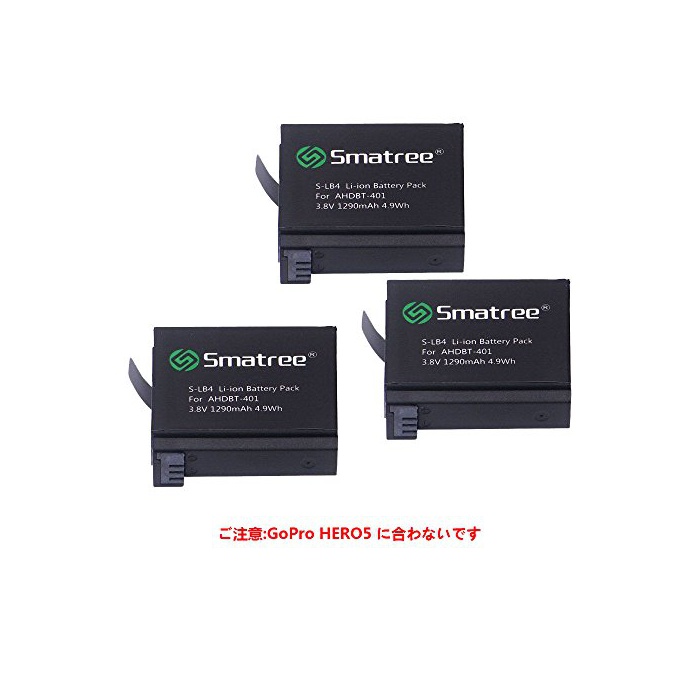 원본상품명: Smatree GoPro Hero4カメラ用バッテリ(3パック)+充電器