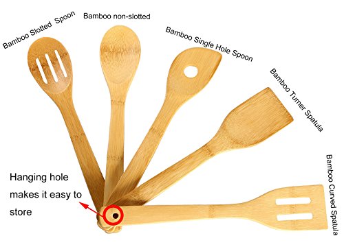 -. Brand : HTB -. EAN : 6094889785015 -. Feature : 5 piece utensil set satisfied all your needs for your cooking and baking. Length 12 Inch. Pack in plastic bag. / Crafted With 100% Natural Organic FDA Approved Eco-Friendly Solid Bamboo! They Will be your durable lovely and safe kitchen tools / Each handle with a 0.2Inch (0.5cm) hanging hole, you can hang them up to save space of your counter. / Easy cleaning ,mild soap and water. Natural drying / Money Back Guarantee: If for any reason our product does not meet your expectation, we will give you a full refund .No questions asked. -. Label : Mida Bamboo&Wood Industry -. Manufacturer : Mida Bamboo&Wood Industry -. MPN : OGB-011 -. PackageQuantity : 5 -. PartNumber : OGB-011 -. ProductGroup : Kitchen -. ProductTypeName : KITCHEN_TOOLS -. Publisher : Mida Bamboo&Wood Industry -. Studio : Mida Bamboo&Wood Industry -. Title : HTB 5pcs Organic Bamboo Cooking & Serving Utensil Set Eco-Friendly Spoon & Spatula Mix With Ergonomic Handle No Stick Kitchen Gadgets Length 12 Inch