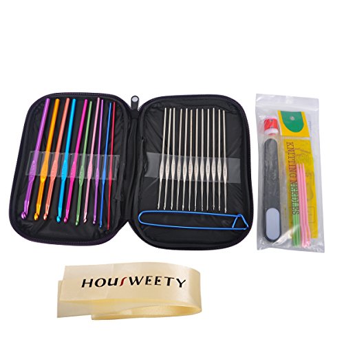 HOUSWEETY Mixed Aluminum Handle Crochet Hook Knitting Knit Needle Weave Yarn Set Full Kit