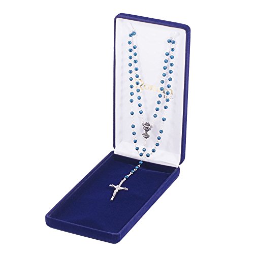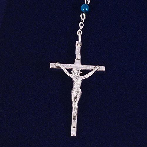 Blue Glass Bead and Metal Communion Rosary - 15" Long