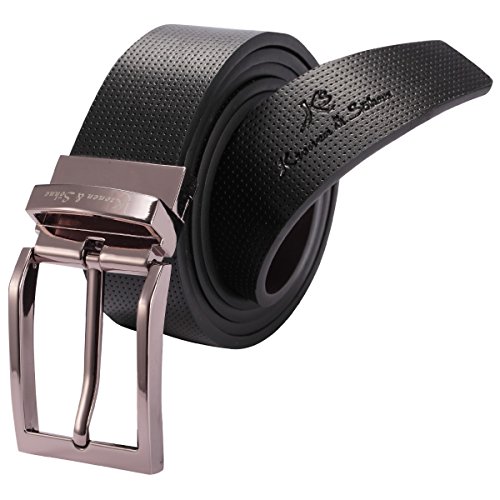 - Title : KS Men's Black Leather Dress Gunmetal Buckle Reversible Belt + Hole Punch KB061