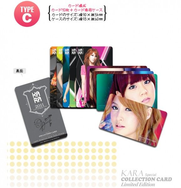 KARA(カラ)とは、『甘いメロディー』という意味を持つ言葉。これに、ギリシャ語の「CHARA(喜び)」を加えて、「KARA の音楽を通じて、喜びを与えたい」という気持ちが込められている。2007年に4人組でデビューするも、2008年5月にメンバーの1人が脱退。その後、新メンバーク・ハラ、カン・ジヨンの2人を加え、5人で第2期KARAの活動を開始。『ミスター』にて日本デビュー後KARAブームを巻き起こした。2014年初旬にチョン・二コルとカン・ジヨンが脱退、公開オーディションのファン投票等によりホ・ヨンジが新メンバーとして加入。新生KARAとして今後の活動が注目されている。