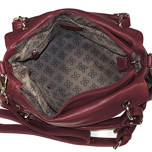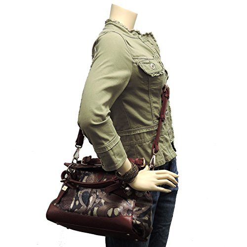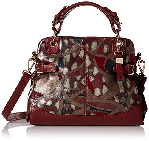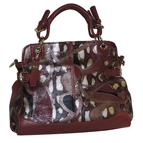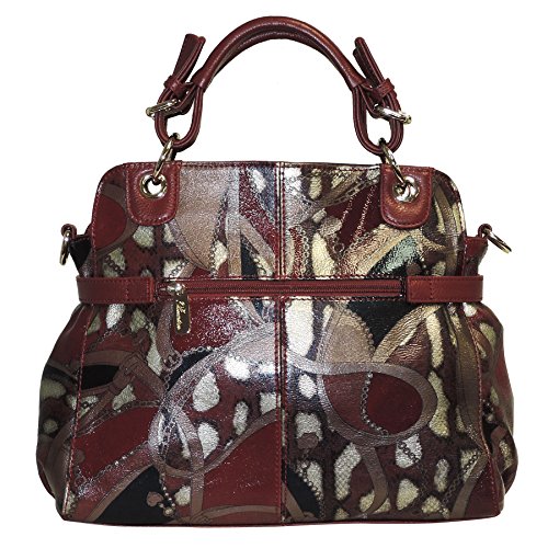 Studio : Buxton Publisher : Buxton Binding : Apparel Product Description This satchel is made with a fun mosaic print leather and gold tone hardware. It has a full zip closure, an exterior zip pocket and a removable crossbody strap. The cotton twill-lined interior has tipped slip pockets and a rear wall zip pocket. 0