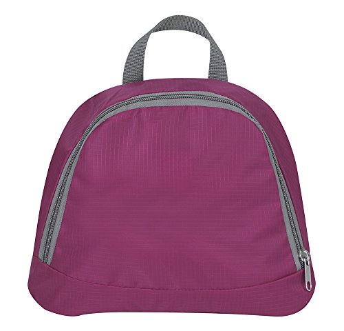 -. Feature : Backpack folds into pocket for packing and storage / Opens to full size backpack / 2 zipper compartments,2 water bottle pockets / Main compartment has 2 interior pockets, front compartment has media pocket and audio port / 9.25 x 11 x 3
