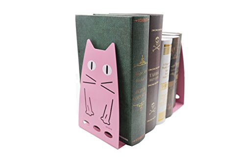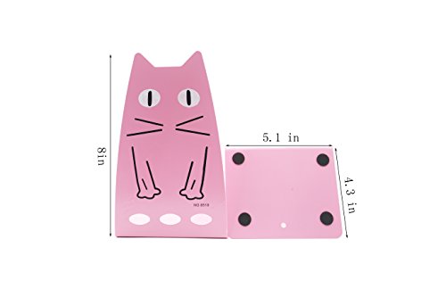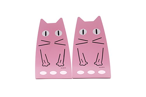 Y-H One Pair Cartoon Cat Nonskid Bookends Art Bookends for Kids Girls Birthday Gifts (Pink)