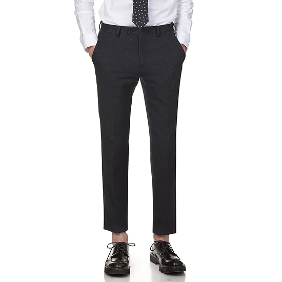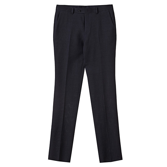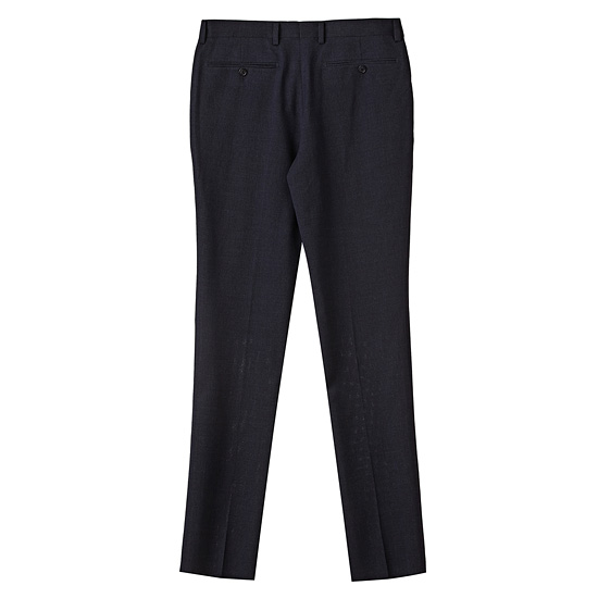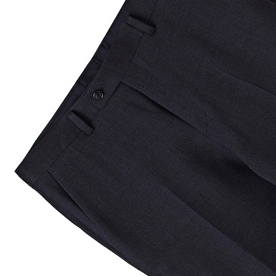 - 코튼 혼방 조직감이 고급스러운 투톤 네이비 남성 수트 팬츠.