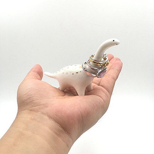 OYLZ Adorable Little Ceramic Dinosaur Jewelry Ring Holder,Engagement Ring and Wedding Ring Display Holder Stand