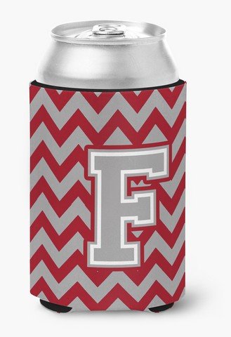 Caroline's Treasures CJ1043-FCC Letter F Chevron Crimson and Grey Can or Bottle Hugger, Multicolor