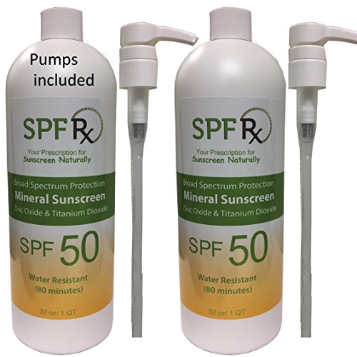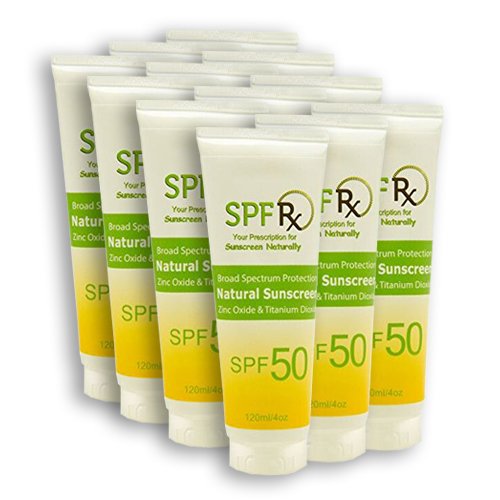 SPF 50 Natural Sunscreen with Zinc Oxide & Titanium Dioxide is a chemical-free sunscreen that provides 80 minutes water resistant for broad spectrum protection. This long-lasting mineral based sunscreen features an SPF 50 broad spectrum protection from damaging UVA and UVB rays. SPF 50 Natural Sunscreen is enriched with clinically proven actives and powerful anti-oxidants that deliver anti-aging benefits. All SPFRX formula variations are: water and perspiration resistant for up to 80 minutes, designed for optimal skin tolerance and are safe and ideal for the entire family and all skin types. Zinc Oxide and Titanium Dioxide sunscreen are the most effective sunscreen ingredients that protect against UVA rays and do not penetrate into your skin.