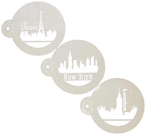Designer Stencils C716 Paris, London and New York Skylines Cookie Stencils, Beige/Semi-Transparent
