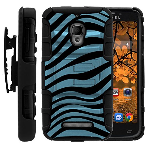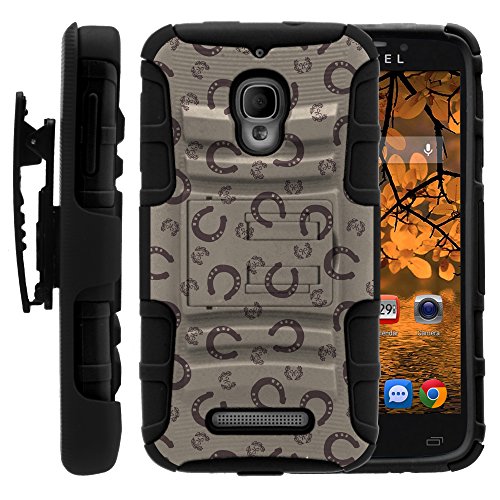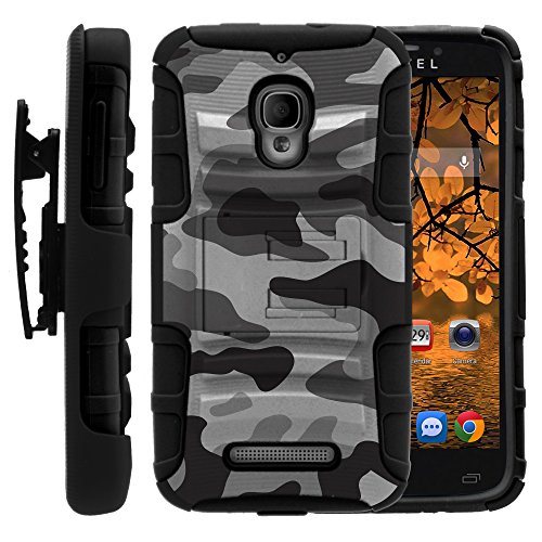 MINITURTLE, High Impact Rugged Hybrid Dual Layer Protective Phone Armor Case Cover with Built in Kickstand, Swiveling Holster Belt Clip, and Clear Screen Protector Film for Android Smartphone Alcatel One Touch Fierce 7024W /T Mobile /Metro PCS (Black