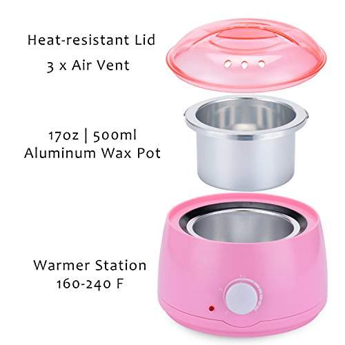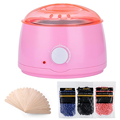 Instruction: 1.Fill the warmer with wax. Amount depend on the area of skin for hair removal. Set the pot to "HI" the highest temperature setting. 2.Heat the wax to totally melt for up to 10-20 minutes. And set the warmer pot to the "MED" heat setting once the wax reaches the desired temperature. 3.Dip the wooden spatula into the hot wax. Spread the wax over your skin in the direction opposite the hair growth. Keep applying wax until the hair is completely covered. 4.Apply some extra wax at the end of the strip. Let it harden slightly, then lift the wax up a bit. 5.Let the wax harden just enough so that it's still soft and pliable. 6.In one quick, fluid motion, pull the strip away from skin in the direction opposite hair growth. 7.Repeat this process for all the hair you want to remove. 8.Smooth a wax remover over treated skin using clean hands.