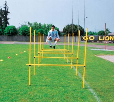 -. Binding : Misc. -. Brand : Goal Sporting Goods -. Color : Yellow -. Feature : The possibilities are endless with this innovative design / 63 in. UP.R.Ight poles with metal stakes / 39 in. Crossbars and adjustable clips to raise and lower the height make this the ultimate training tool / Each set contains: / 16 poles -. Label : Goal Sporting Goods -. Manufacturer : Goal Sporting Goods -. MPN : LYSB00846CM2Q-SPRTSEQIP -. PackageQuantity : 1 -. PartNumber : LYSB00846CM2Q-SPRTSEQIP -. ProductGroup : Sports -. ProductTypeName : SPORTING_GOODS -. Publisher : Goal Sporting Goods -. Studio : Goal Sporting Goods -. Title : Outdoor Adjustable Agility Hurdles w Poles & Clips Set