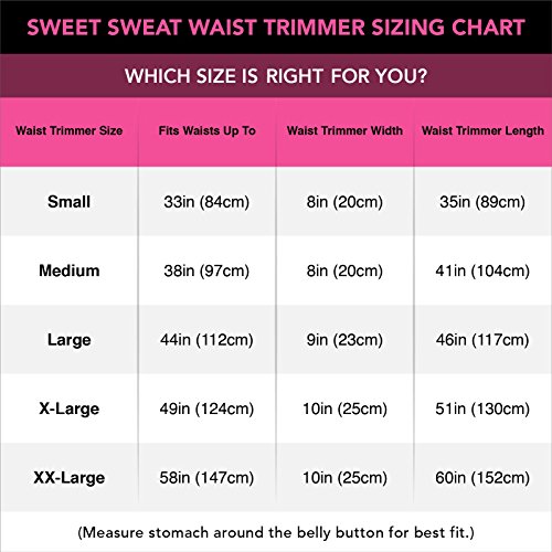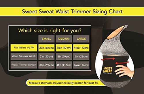 Flexible Custom Fit For Exercising The Sweet Sweat Waist Trimmer was designed to be worn during exercise. The trimmers contoured fit and flexible neoprene allows for a full range of motion during your workout. Remember not to wear the belt too tight, as this can actually hinder circulation and range of motion during exercise. Premium Quality Makes The Difference Forget those cheap, thin ab belts! The Sweet Sweat Waist Trimmer is made with the highest grade Neoprene for Superior heat insulation and lasting wear. Maximize Results With Sweet Sweat Gel Use Sweat Sweat in combination with your waist trimmer during exercise and you will be amazed how much more sweat you will achieve than using the belt alone! Before exercise, apply an ample amount of Sweet Sweat to stomach area without rubbing into the skin. Place Waist Trimmer over Sweet Sweat and begin your workout. Add to Cart Now - It's Guaranteed! If you're not thrilled with your Sweet Sweat Waist Trimmer, return it within 90 days of delivery for a money-back refund. Important Note Sweet Sweat Waist Trimmer does provide back support but is not intended for this use. The Sweet Sweat Waist Trimmer is not a corset nor does it function like a corset. Please do not wear over any open wounds, or if you're susceptible to dermatitis or allergic to Neoprene. Do not wear for more than 2 hours as Neoprene is designed to be worn for only short periods of time. Do not wear while sleeping. If you develop a rash discontinue use immediately. New Neoprene often has something similar to a "wetsuit smell". Don't worry, this will dissipate over a short time by washing and normal exposure to air. 0 |