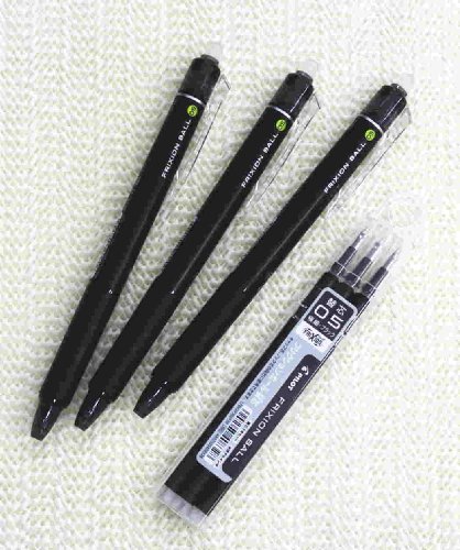 Pilot FriXion Ball Knock Retractable Erasable Gel Ink Pens,Fine Point, - 0.5mm - Black Ink- Value set of 3 & 3 Gel Ink Pen Refill Pack