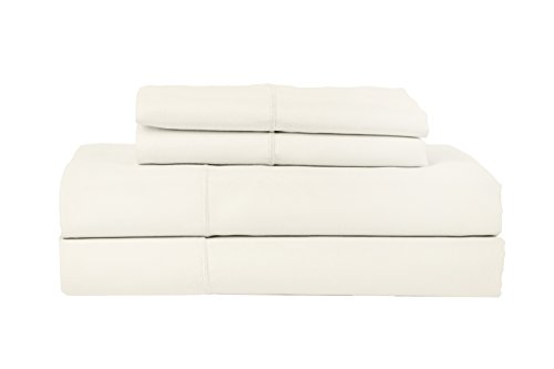 Devonshire Collection of Nottingham 820 Thread Count Solid 100% Cotton Sateen Sheet Set, Queen, Ivory