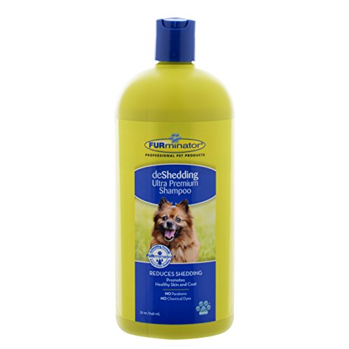 Furminator deShedding Ultra Premium Shampoo works to reduce shedding while promoting healthy Skin and Coat. This gentle formula contains no parabens or chemical dyes and is enriched with Omega 3 and 6 fatty acids, Calendula Extract, and Papaya Leaf Extract. Use monthly as part of the FURminator at-home professional grooming regiment for best results.Feature