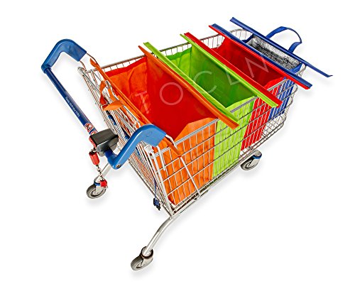 TOCLN: Reusable Shopping Cart Trolley Bags Set of 4, with Velcro, Detachable, Pep board on the Bottom for Sturdiness-NO Sagging,Insulated Frozen/Hot Foods Bag, Suitable For USA and Canada.Heavy Duty
