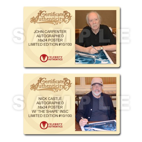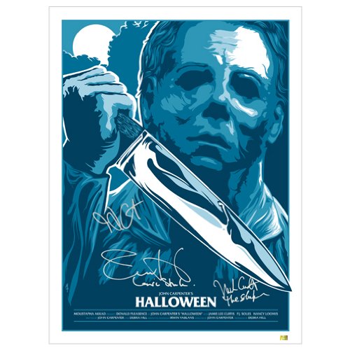 Personally hand signed by Jamie Lee Curtis, Nick Castle and John Carpenter; In stock and ready to ship.
