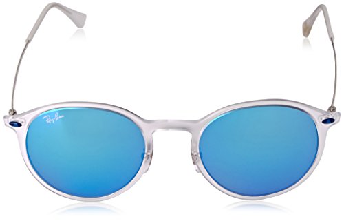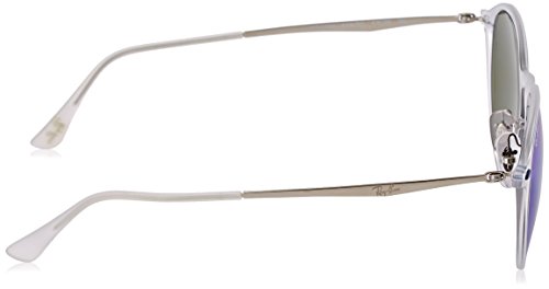 Ray-Ban 0RB4224 Round Sunglasses, Matte Trasparent,Green Mirror & Blue Silver, 49 mm