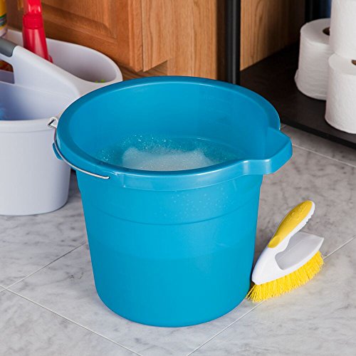 Studio : Sterilite Publisher : Sterilite Binding : Kitchen Product Description The 12 Quart Spout Pail is ideal for all types of household chores. This pail features a metal handle with a comfortable plastic hand grip. The easy pour spout and the hand grip on the bottom of the pail allow for smooth controlled pouring. The textured finish of the pail is accented by a polished stripe on the interior making the volume marks easier to read. 0