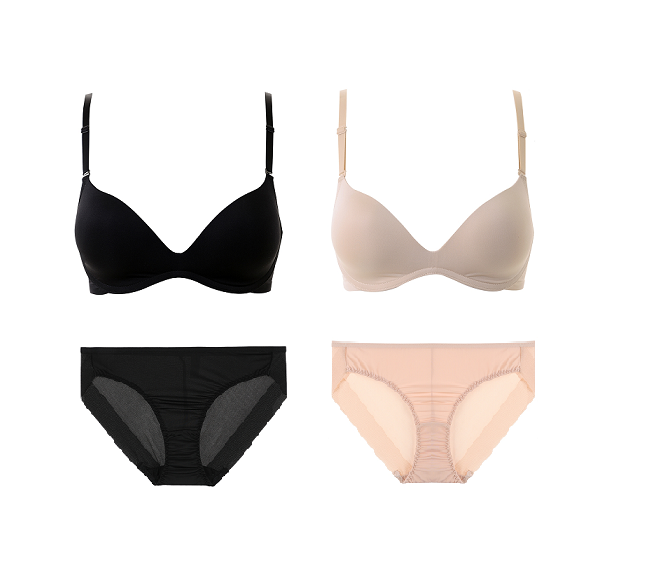 NO-WIRE 제품으로 75A,75B,80A컵에는 PUSH가 있고 전사이즈 컵안쪽에 패널을 삽입해 노와이어지만 모아주는 효과를 주었다.