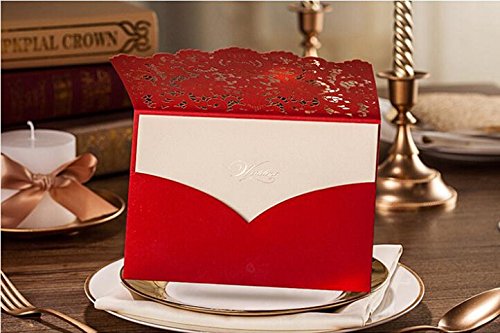 Joinwin® 25 Floral Laser Cut Wedding Invitation Table Card Seat Card Place Card For Wedding Favors And Gifts (Red)