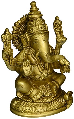 Brass Sculpture Ornaments Hindu Good Luck God Ganesh Ganesha Statues, Size:H-5.25,L-2.75,W-2 Inches, Weight:0.962 Kg