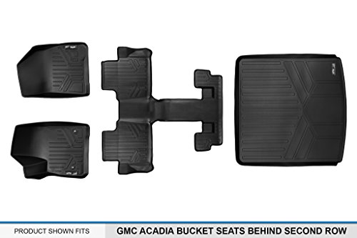 -. Binding : Automotive -. Brand : MAXLINER -. Color : black -. EAN : 0707152349949 -. Feature : Only fits vehicles with 2nd row bucket seats. Cargo liner covers behind the 2nd row seats. Does not fit Acadia Limited or All Terrain models / Top of the line stain-resistant all-weather durability that gives your interior a first class look / Custom fit precision of the mat protects your floor by stopping spills and any other mess thanks to the liners raised and strengthened lip / Textured skid-resistant surface that is easily cleaned / Lifetime warranty -. IsAutographed : 0 -. IsMemorabilia : 0 -. Label : MAXLINER -. Manufacturer : MAXLINER -. ManufacturerPartsWarrantyDescription : Parts -. Model : A0230/B0230/D0230 -. MPN : A0230/B0230/D0230 -. NumberOfItems : 1 -. PackageQuantity : 1 -. PartNumber : A0230/B0230/D0230 -. ProductGroup : Automotive Parts and Accessories -. ProductTypeName : AUTO_ACCESSORY -. Publisher : MAXLINER -. ReleaseDate : 2017-05-31 -. Studio : MAXLINER -. Title : MAXFLOORMAT Floor Mats (3 Rows) and MAXTRAY Cargo Liner Behind 2nd Row Set Black for 2017-2018 GMC Acadia With 2nd Row Bucket Seats -. UPC : 707152349949