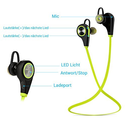 -. Title : Emixc Wireless Sports Headset Mic In-Ear Bluetooth Headphone, Noise Cancelling Sweatproof Running Hiking Stereo Earphone for iWatch iPhone 7, 7 Plus, 6, 6 Plus, 5 iPad Air, Galaxy S7 - Lime Green